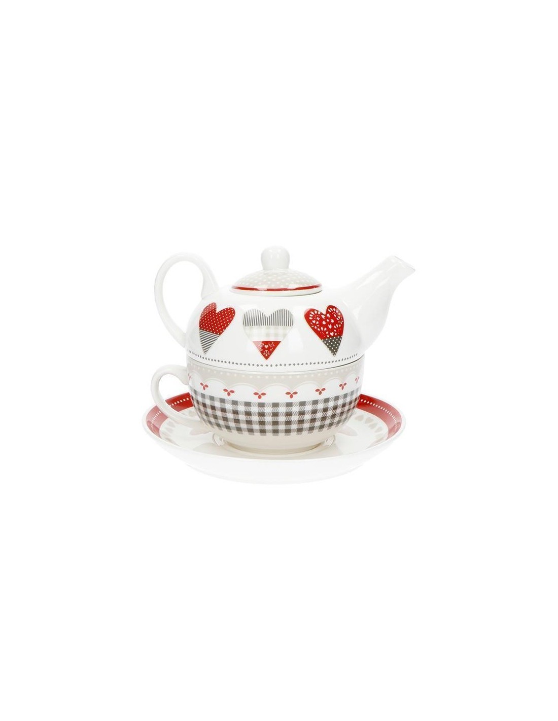 Un'elegante teiera con tazza, realizzata in Bone China e dotata di piattino coordinato, che renderà veramente speciale il tuo momento di quiete. Armoniosi cuoricini dalle diverse decorazioni riempiranno la circonferenza della teiera tra aggraziati decori geometrici e delicate colorazioni adatte ad ogni stagione. Un buon tè caldo sorseggiato con stile!