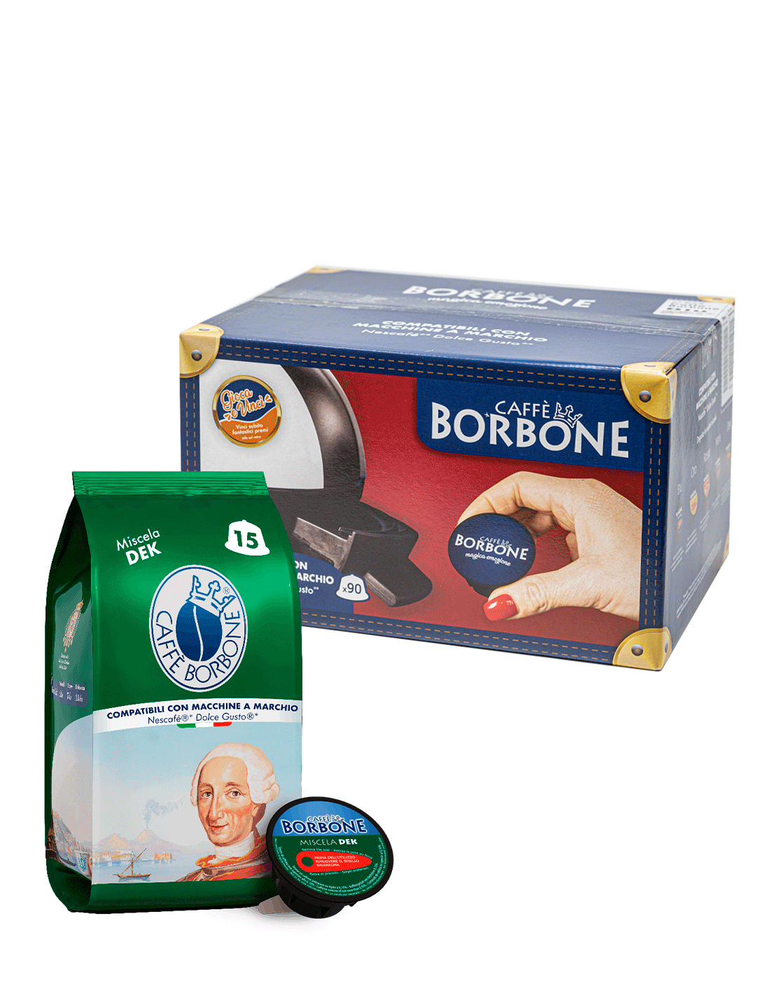 90 capsule Caffè Borbone miscela Dek compatibili con macchine Nescafé Dolce Gusto.