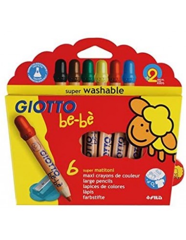 Giotto Be-bè Super Matitoni 6 pezzi + temperamatite - Ideali per i più piccoli divertenti e dai colori vivaci sono facili da utilizzare come piacciono ai tuoi bambini. Superlavabili da mani e tessuti, sicuri perchè dermatologicamente testati, facili da temperare, come piacciono anche a te, mamma. Garantisce Giotto!