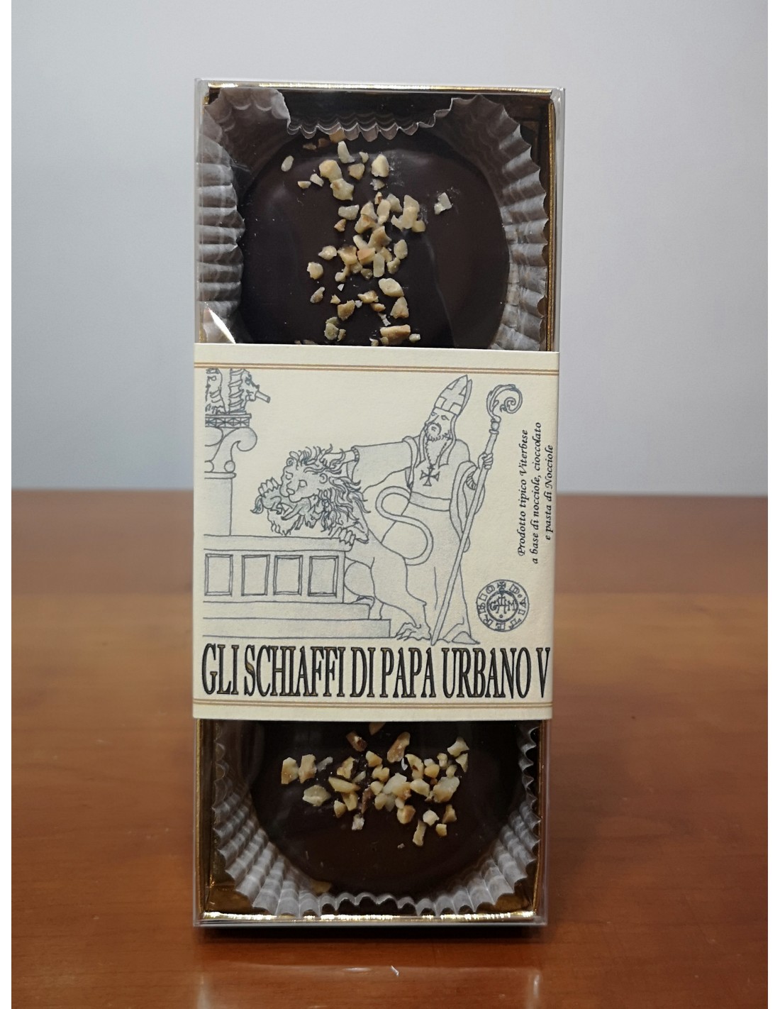 Ingredienti: Pasta di cacao, zucchero, emulsionante: lecitina di soia, aromi, cacao min.60%, grasso vegetale (olio di cocco), latte intero in polvere, cioccolato bianco (latte intero in polvere, zucchero, burro di cacao), latte scremato in polvere, pasta di nocciole, nocciole dei monti Cimini. Può conteneretracce di noci, mandorle, pistacchi e glutine