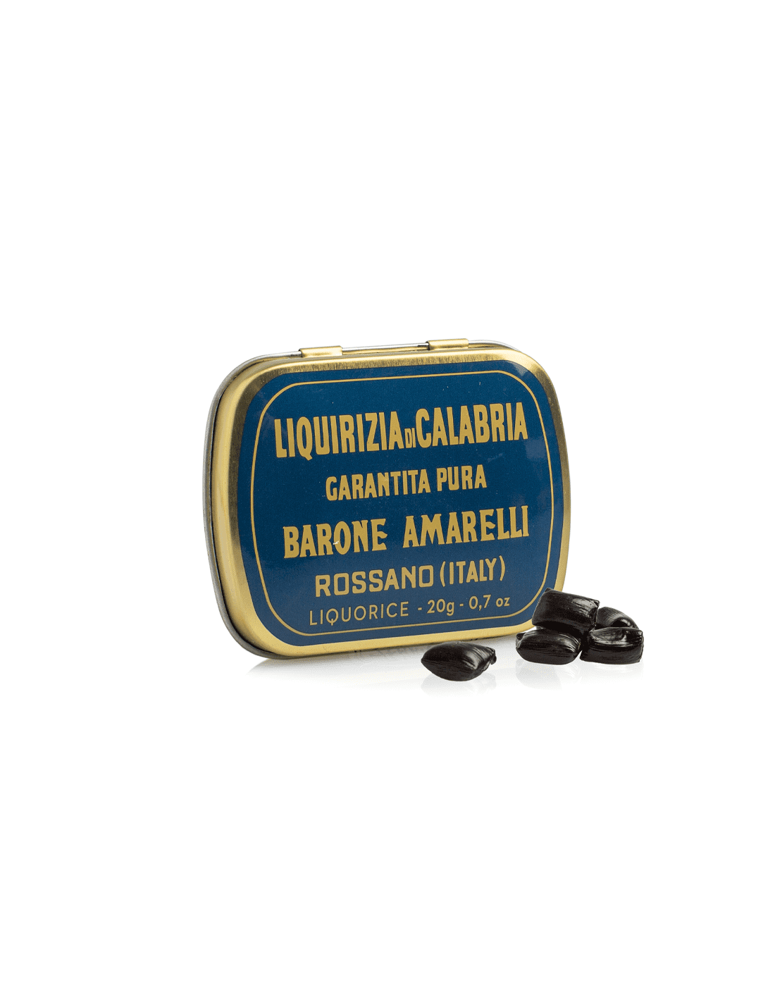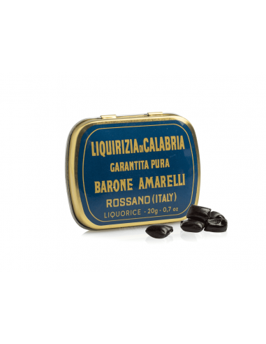 La liquirizia Amarelli Barone in lattina da 20 g. è una spezzatina di liquirizia pura in tronchetti.