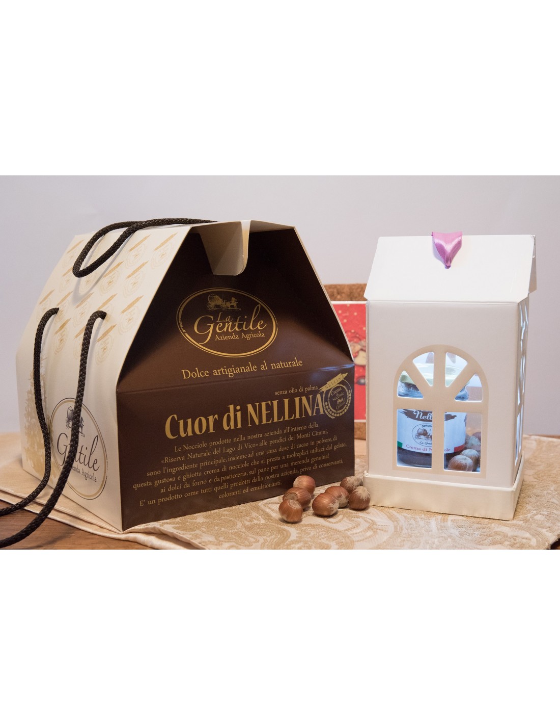 Il Cuor di Nellina è un delizioso e soffice panettone rigorosamente artigianale nato per offrire tutto il gusto delle migliori nocciole prodotte nella Riserva Naturale del Lago di Vico alle pendici dei Monti Cimini sono l'ingrediente principale, insieme ad una sana dose di cacao in polvere, di questa gustosa e ghiotta crema di nocciole che si presta a molteplici utilizzi: dal gelato, ai dolci da forno e da pasticceria, sul pane per una merenda genuina. E' un prodotto come tutti quelli che escono dalla nostra azienda, privo di conservanti , coloranti ed emulsionanti