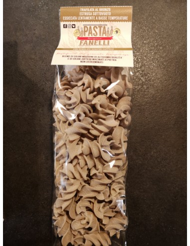 I fusilloni ai 3 grani, la riscoperta della macinatura a pietra e dei grani antichi. Dalla collaborazione con i migliori mulini del nostro territorio, nasce la linea delle paste ottenute da grani antichi macinati a pietra: Senatore Cappelli, Verna, Khorosan, selezioniamo e valorizziamo le colture di grani duri e teneri dimenticati. Con la macinatura a pietra si ottiene una farina integrale al 100%, in quanto si macinano chicchi interi non privati della crusca e del germe, ottenendo un prodotto ricco di sapori e aromi, dotato di proprietà nutrizionali superiori in termini di apporto di fibre, vitamine e sali minerali. Il metodo di lavorazione di questa linea di pasta, a causa della ridotta concentrazione di glutine presente nei grani considerati antichi, prevede il rispetto degli impasti, una cura maniacale di tutte le fasi produttive e lunghissimi tempi di essiccazione.